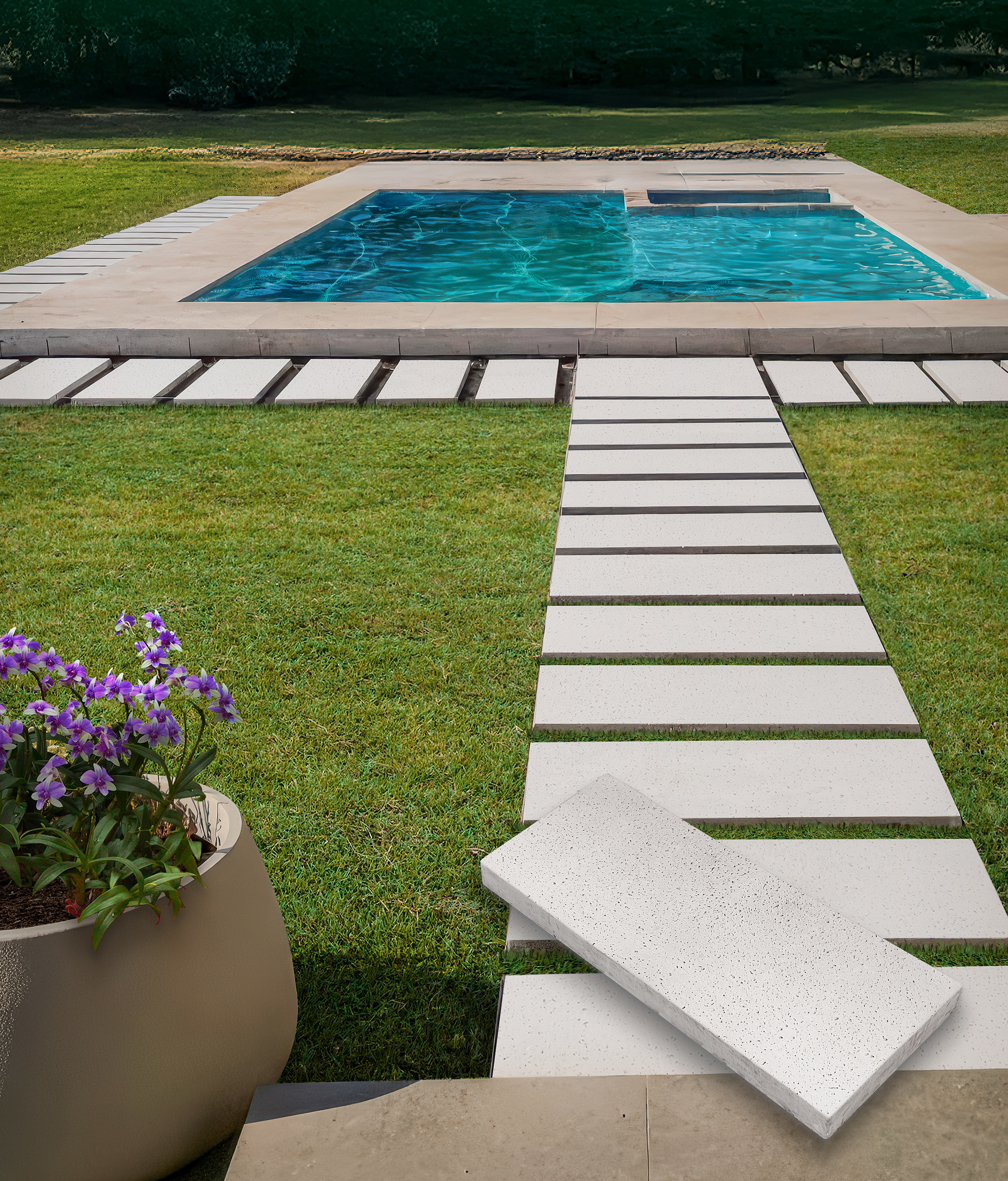 Huellas de hormigón en piedra reconstituida de fabricación nacional propia , diseñadas con texturas y formatos exclusivos que convierten cada proyecto en algo único. Ideales para senderos, accesos, áreas verdes, terrazas y estacionamientos , combinan estética y funcionalidad en todo tipo de espacios exteriores. Su superficie atérmica disminuye la absorción de calor por exposición solar, per mitiendo caminar con mayor confort, mientras que su terminación antideslizante aporta seguridad en zonas húmedas o de alto tránsito. Cada pieza se fabrica artesanalmente y en color a elección , por lo que puede presentar leves variaciones en color, textura y formato, propias de un producto hecho a mano.