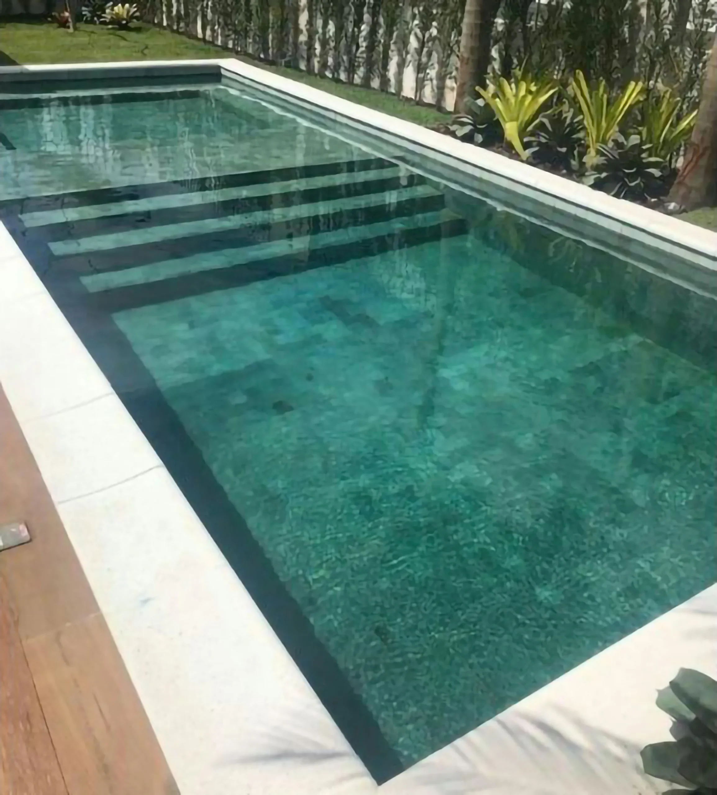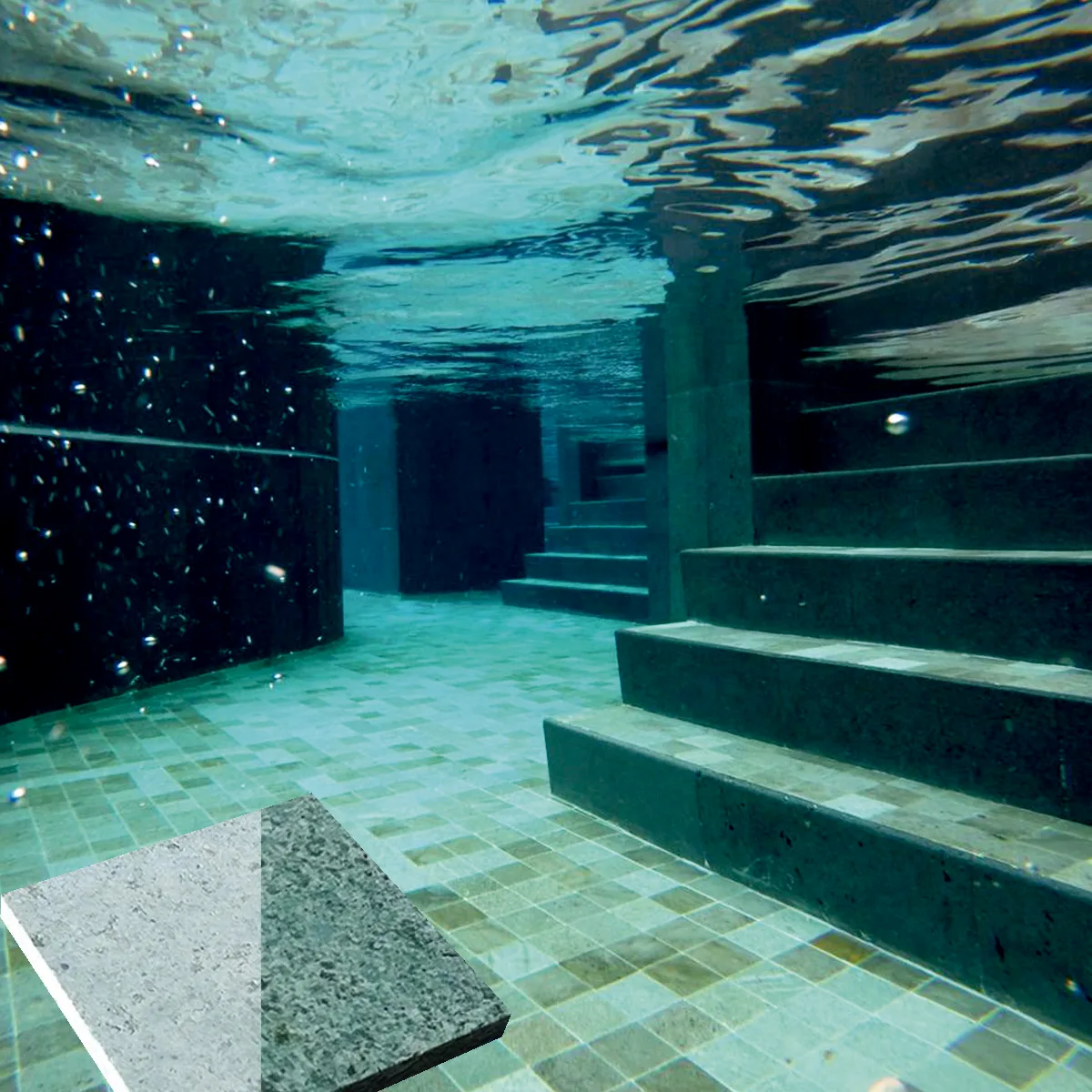 La Piedra Bali es un revestimiento natural de origen volcánico ampliamente reconocido por su belleza exótica y su inigualable resistencia. Su tonalidad verde-azulada, que varía según la iluminación y la profundidad del agua, aporta a las piscinas un efecto visual único, creando un ambiente similar al de lagunas tropicales y spas de lujo.